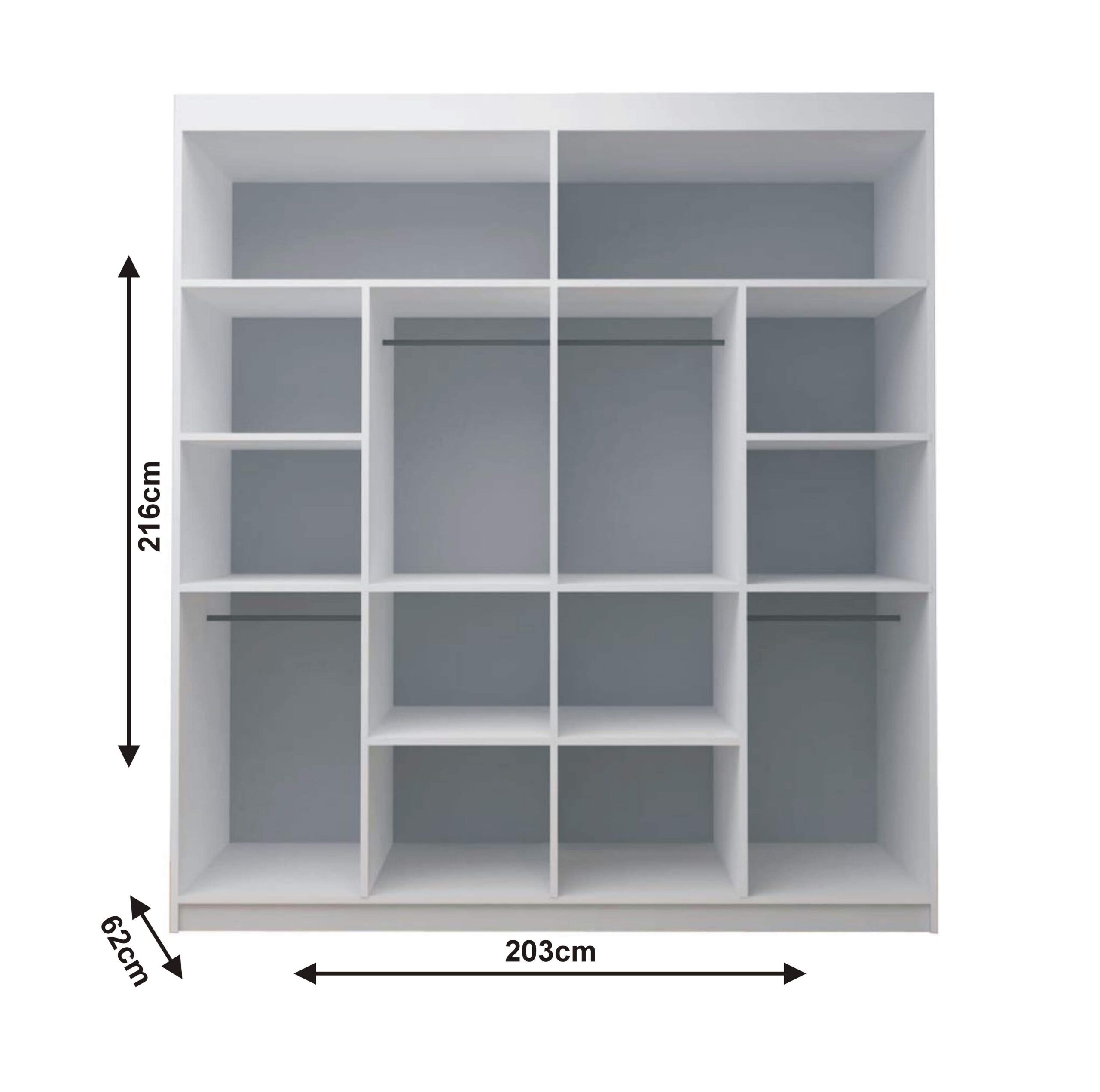 Interior Layout of the 203cm Grey Sliding Mirror Wardrobe