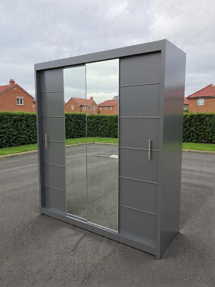 Large Grey Double Sliding Door Wardrobe – 203cm with Mirror